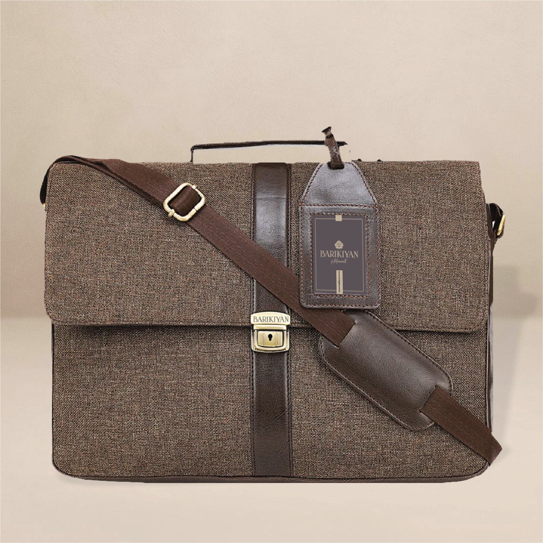 Barikiyan Moments Classic Brown Leather-Trimmed Laptop Bag -